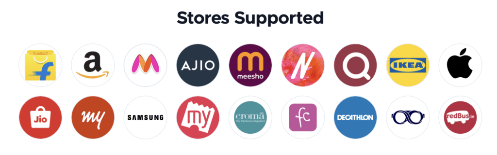 🛒 Amazon, Flipkart, Myntra, Meesho, AJIO, Nykaa, Croma, Decathlon, IKEA, Apple, Samsung, JioMart, RedBus, Blinkit, and more.