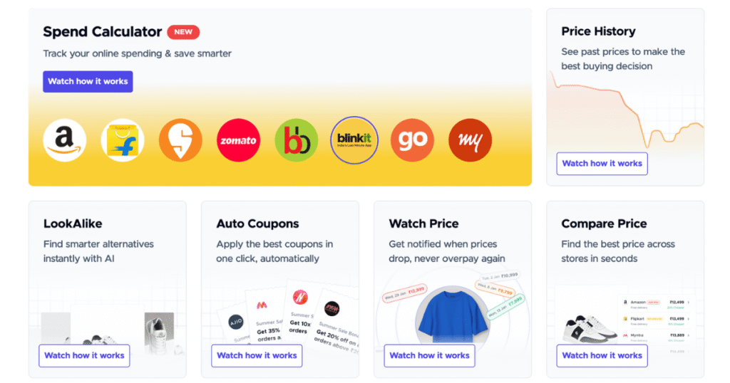 🛒 Amazon, Flipkart, Myntra, Meesho, AJIO, Nykaa, Croma, Decathlon, IKEA, Apple, Samsung, JioMart, RedBus, Blinkit, and more.
